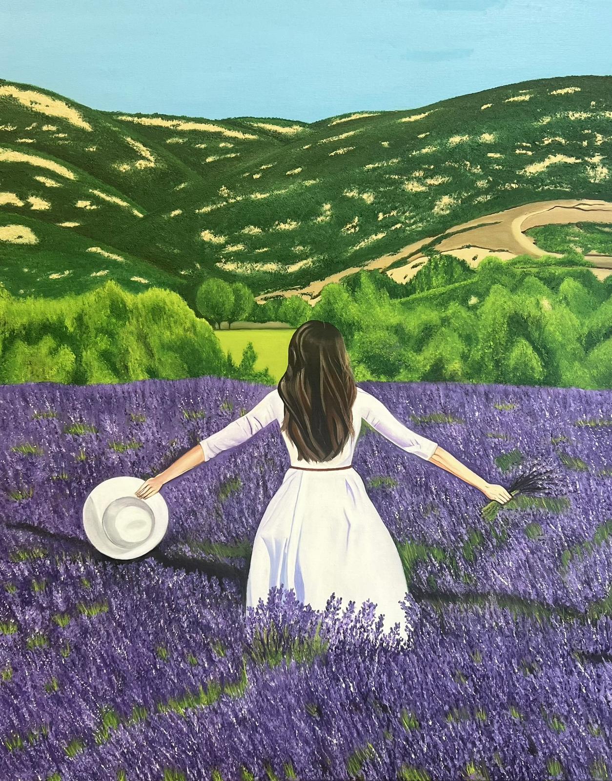 Isparta’da lavanta tarlalarının ortasında çekilmiş bir anın tuvale dönüşmüş hali…